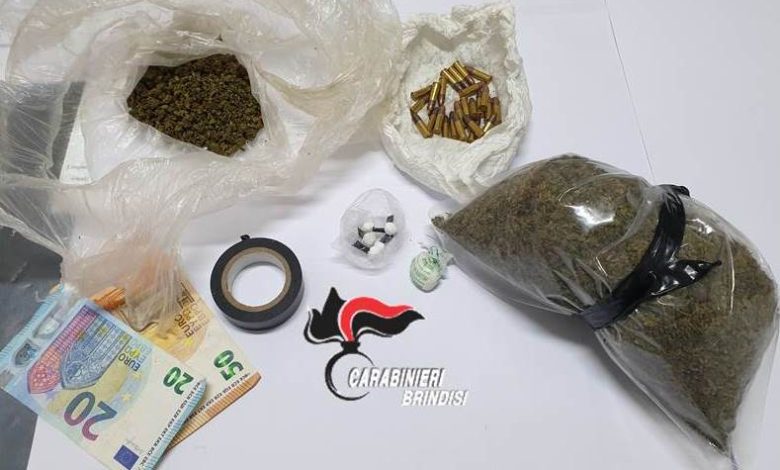 Contestualmente sono stati analizzati i cellulari dei soggetti, dai quali si è accertata l’attività di spaccio posta in essere da entrambi. La sostanza stupefacente e il munizionamento sono stati sequestrati.  Dopo le formalità di rito, gli arrestati sono stati tradotti presso la Casa Circondariale di Brindisi su disposizione dell’A.G..