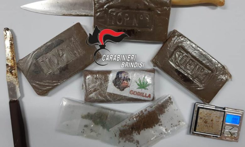 Brindisi: I Carabinieri della Stazione di Brindisi Casale, coadiuvati nella fase esecutiva dal team dei Carabinieri Cinofili di Modugno (BA) per la ricerca di sostanze stupefacenti insieme al cane Quentin, all’esito di un servizio preordinato di osservazione, hanno: