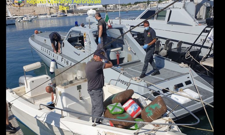 Castro (LE): L’intervento è stato condotto da una vedetta velocissima del Reparto Operativo Aeronavale della Guardia di Finanza di Bari, chiamato a contrastare i traffici illeciti via mare diretti in Puglia, in collaborazione con il Gruppo Aeronavale della Guardia di Finanza di Taranto, specializzato in operazioni a largo raggio nonché “Local Coordination Center” per l’operazione internazionale “THEMIS 2020” coordinata dall’”European Border and Coast Guard Agency” (Frontex).