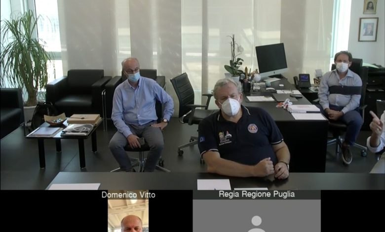 Bari. Il presidente della Regione Puglia Michele Emiliano ha da poco terminato una riunione sul focolaio individuato in una azienda di Polignano, dove sono stati individuati nelle ultime ore 78 casi positivi sui primi 159 tamponi eseguiti dal dipartimenti di prevenzione della Asl di Bari. Presenti il direttore del Dipartimento Promozione della salute Vito Montanaro, il prof. Pier Luigi Lopalco, il direttore Asl Bari Antonio Sanguedolce, la responsabile area epidemiologia Aress Lucia Bisceglia, il direttore del dipartimento di prevenzione Asl Bari Domenico Lagravinese, il sindaco di Polignano Domenico Vitto.