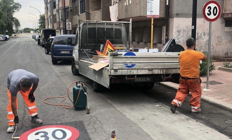 Dopo le prime tracce della rete delle piste ciclabili che coprirà l’intera città, si sta procedendo con la segnaletica orizzontale e verticale che individua le cosiddette “zone 30”, aree dove il limite di velocità per i mezzi a motore è sensibilmente inferiore, a garanzia dell’incolumità di pedoni e ciclisti.
