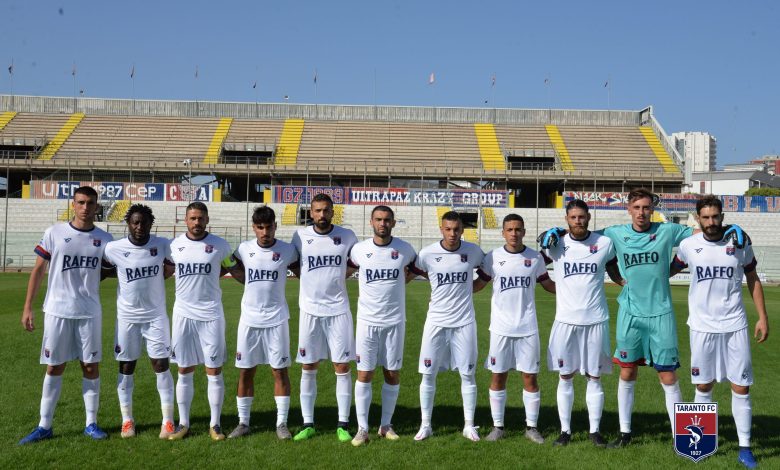 TARANTO 4231: Sposito; Boccia, Guastamacchia, Rizzo, Caldore; Matute, Marsili; Lagzir (76’ Stracqualursi), Acquadro (74’ Falcone), Santarpia (67’ Marino); Serafino (76’ Mastromonaco). Panchina: Stasi, Shehu, Giammaruco, La Gioia, Mariano. All. Laterza.