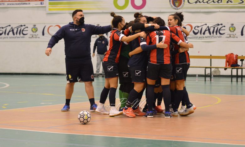 La prima delle due gare in rapida successione è vinta per 6-2 dall’Italcave Real Statte contro un buon Capena. Al di là del risultato, la gara del PalaCurtivecchi è stata aperta sino a due minuti dalla fine e le ioniche hanno portato a casa 3 punti importanti per la classifica anche in vista del recupero di lunedì alle 16.30 col Pelletterie. Italcave che parte con Margarito, Soldevilla, Violi, Boutimah, Renatinha. Rispondono le ospiti Castagnaro, Martin, Will, Neka, Macchiarella. Prima azione di marca rossoblù: tiro a giro di Renata e pallone deviato da Castagnaro in corner. Sul successivo calcio d’angolo la stessa 99 stattese calcia alto sopra la traversa. Poco dopo Boutimah trova spazio centralmente, sfera che viene deviata a terra da Castagnaro. Le ioniche trovano sempre i raddoppi di marcatura del Capena, soprattutto su Renata che, quando ha spazio, prova ad andare sul fondo, cross per Boutimah ma sotto porta non riesce a correggere in rete. Al primo errore sulle marcature, l’Italcave ne approfitta: minuto 15 e contropiede 2 contro 2, Renata prova il pallonetto basso su Castagnaro e la beffa. Passano pochi secondi: Boutimah è coperta dal limite dell’area,ma il suo tiro, di destro basso, trova lo spiraglio giusto: Castagnaro tocca la sfera che pian piano termina in rete e il punteggio è di 2-0. Finale di prima frazione ancora di marca ionica: Violi, dalla destra, lungolinea per Mansueto, diagonale che finisce sul fondo di poco. Al 19′ si vede in avanti il Capena: Sgarbi, dal limite, calcia forte, basso e angolato, Margarito apre la mano sinistra e mette in corner. Nella ripresa è Boutimah-Renata l’asse per allungare nel punteggio. Le due nazionali si scambiano, infatti, l’assist e il tiro per realizzare la terza e quarta rete. Da qui inizia un match con rapidi capovolgimenti di fronte. Il Capena ci prova con più convinzione: prima è Sgarbi, Margarito di piede respinge. Poi Neka all’altezza del tiro libero calcia forte, tiro deviato che si abbassa all’improvviso e scheggia la traversa. Le rossoblù rispondono con un bel contropiede che Pedroso per pochi centimetri non realizza. Stessa distanza che non permette a Mansueto di segnare il gol, dopo la traversa di Renata dal limite. Ma al nono Fuhrmann se ne va sulla sinistra e incrocia basso nell’angolino alla sinistra di Margarito. Il gol ricarica il Capena: Sgarbi dal limite, sfera che sfiora il palo. Will, poi, trova spazio per arrivare di fronte a Margarito e dimezzare lo svantaggio. Ci sono 7 minuti e le ioniche vedono la massima pressione ospite ma è Margarito che risponde sempre presente: al minuto 15 su Benvenuto, diagonale neutralizzato. Le rossoblù reggono e con Renata, a giro, e Soldevilla, distanza ravvicinata, non riescono a segnare la quinta rete. Ma è il minuto 17 e 20 secondi che decide la contesa: Will, tutta sola in area, calcia a botta sicura, Margarito è miracolosa deviando in corner un gol fatto. E allora il terzo uno-due di giornata chiude il match in favore dell’Italcave: contropiede perfetto con Renata che insacca. Palla al centro, Boutimah sulla sinistra, dentro per Soldevilla che di prima intenzione in scivolata chiude la contesa. Da sottolineare l’ingresso in campo di Girardi e De Marchi che hanno fatto il loro esordio in campionato. Questo il pensiero di Tony Marzella a fine gara: “Avevamo davanti una squadra come il Capena che era imbattuta, brava a chiudersi e ripartire. Siamo stati intelligenti a non essere troppo precipitosi nel cercare di sbloccare il risultato. Sul 4-0 abbiamo avuto le occasioni per allungare, anche dopo aver subito il primo gol. Diciamo che abbiamo vissuto un finale di partita palpitante e, alla fine, abbiamo concretizzato la nostra pressione. Però sono felice dei 3 punti importanti che abbiamo conquistato. Pensiamo a lunedì e poi faremo una sintesi di questo doppio appuntamento ravvicinato”.