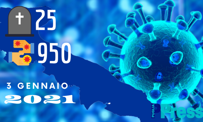 Ci Sono stati 25 decessi: 8 in provincia di Bari, 3 in provincia BAT, 4 in provincia di Brindisi, 6 in provincia di Foggia, 3 in provincia di Lecce, 1 in provincia di Taranto.