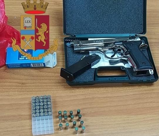 A casa del cugino 21enne è stata recuperata e sequestrata la pistola, una cal.8 a salve completa di caricatore, e relative munizioni, identica a quella utilizzata da minore nel video. Sequestrati anche altri 18 proiettili esplosi dello stesso calibro rinvenuti sul marciapiede di fronte al balcone teatro del video.