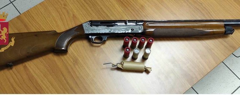 La perquisizione dei locali in via Pietro Nenni ha permesso di recuperare, ben nascosto su un soppalco la cui porta era chiusa a chiave, all’interno di un sacco di plastica nera, un Fucile “Marca Benelli” modello “123SL 20” cal.12, sette carucce dello stesso calibro ed un manufatto esplosivo artigianale del peso di 50 grammi.