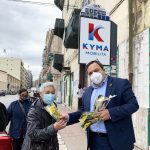 Paolo Castronovi regala mimose alle passeggere degli autobus di Kyma Mobilità