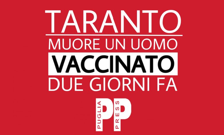 Ultim’ora Taranto – Muore un uomo vaccinato due giorni fa