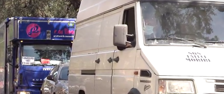 Lecce – Protesta degli ambulanti, camion e mezzi sfilano per la città