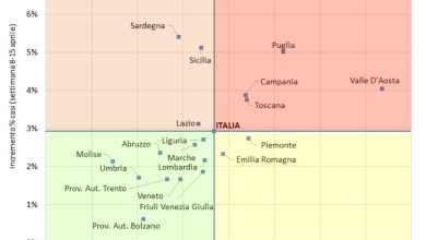 Relazione tra incidenza per 100.000 abitanti e incremento percentuale dei casi Il grafico illustra il posizionamento delle Regioni in relazione…