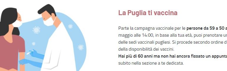 Continua la possibilità di prenotazione per le altre classi di età in corso, sempre tramite sito web lapugliativaccina.regione.puglia.it , numero verde 800713931 e farmacie.