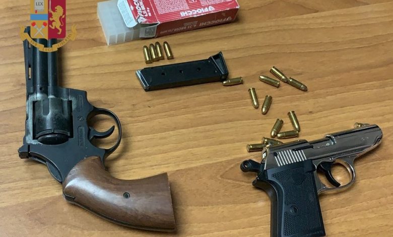 A conferma di quanto sospettato, all’interno del marsupio che il 37enne portava a tracolla, i poliziotti hanno recuperato una pistola modificata, clandestina, calibro 6.35, con un colpo in canna e altri tre all’interno del caricatore inserito oltre a  14 colpi dello stesso calibro.