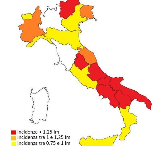 E a finire in zona rossa nei primi sette mesi del 2021 con un’incidenza maggiore del 25% rispetto alla media nazionale (Im=Indice incidenza medio pari a 23,7 morti ogni milione di lavoratori) sono: Puglia, Campania, Basilicata, Umbria, Molise, Trentino Alto Adige e Abruzzo.
