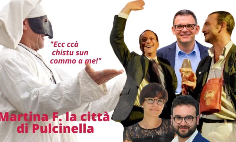 La manifestazione in questione è Pulcinella pizza festival. A Martina Franca la prima tappa ed è previsto l’approdo in altre italiane. Ad organizzarla una associazione locale che avrebbe cambiato nome, nata in contemporanea con l’insediamento di questa amministrazione comunale. L’obiettivo sarebbe valorizzare storicamente e culturalmente, l’arte della pizza e le rappresentazioni musicali e teatrali della tradizione napoletana. Si chiamerebbe Associazione Culturale “Ambasciatori del Gusto”. Il “PULCINELLA PIZZA FESTIVAL”, porterà a Martina Franca (nel nuovo parcheggio di via Pietro del Tocco nei pressi della Polizia e della Guardia di Finanza) da venerdì 24 a lunedì 27 settembre, diversi maestri pizzaioli napoletani che si alterneranno ai forni, rigorosamente a legna, per la preparazione della regina dei piatti campani: la pizza, nelle condizioni igieniche sanitarie che si ignorano, in quanto l’area non è attrezzata in tal senso. Tra gli spettatori, magari ci saranno i pizzaioli martinesi e i somministratori che erano convinti che la loro era la città fosse quella del fornello e delle bombette. Ma la campagna elettorale per le comunali del prossimo anno sembra già iniziata da tempo.