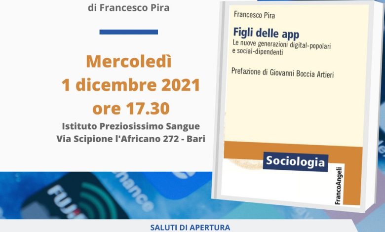 Si terrà giorno il 01 dicembre alle ore 17.30, a Bari presso l’Istituto “Preziosissimo Sangue” un incontro sul tema relativo alle nuove generazioni social dipendenti e la lotta contro le derive del web e l’isolamento fisico. L’evento fortemente voluto dall’Associazione Pedagogisti Italiani di Puglia e Basilicata (ANPE) e dall’Associazione Nazionale Sociologi di Puglia (ANS), vedrà come ospite della serata il sociologo Francesco Pira ,professore associato di comunicazione e giornalismo all’Università di Messina che sensibilizzerà sull’allarme sociale che è derivato dal fenomeno del cyberbullismo, del sexting, del revenge porn, del cutting e a chi ha perso la vita per inseguire una challenge, presentando il suo nuovo libro dal nome “Figli delle App”. A fare gli onori di casa Suor Francesca Palamà , da sempre impegnata nella educazione e sostegno ai bambini ed adolescenti, e che è stata promotrice dell’attivazione di uno sportello di ascolto ed intervento nella scuola che dirige. A condurre la conversazione con l’autore, il professor Antonio Curci, barese e docente di informatica nonché vincitore del Global Teacher Award 2021, che porterà l’attenzione sul ruolo dei ragazzi nella società, sull’educazione all’uso responsabile dei social e sulle sue derive come l’isolamento, l’insicurezza e fragilità e l’essere prigionieri di un algoritmo. La Presidente regionale dell’Associazione Anpe Filomena Labriola e il Presidente dell’Associazione ANS Ivan Iacovazzi unanimi sottolineeranno l’importanza del ruolo che ha ogni singola disciplina nella lettura, analisi e poi l’intervento sul fenomeno che deve coinvolgere i ragazzi, genitori e le varie agenzie educative come scuola e famiglia.