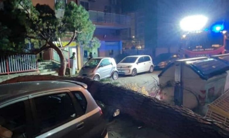Bari: Cade albero in strada finendo sulla carreggiata, abbattendo la recinzione di un condominio