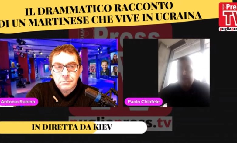 Paolo Chiafele , è un salumaio di Martina Franca dal 2015 in Ucraina e precisamente a Kiev. Lo raggiungiano in diretta televisiva su pugliapress TV (vedi quì’) mentre la città viene bombardata.