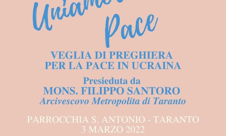 TARANTO: “UNIAMOCI PER LA PACE”: VEGLIA DI PREGHIERA PER LA PACE IN UCRAINA