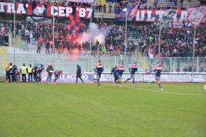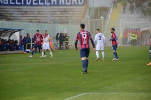 Al 45^ i rossoblu, sull’ennesimo contropiede, provano a pareggiare con Saraniti che di testa tira centralmente.