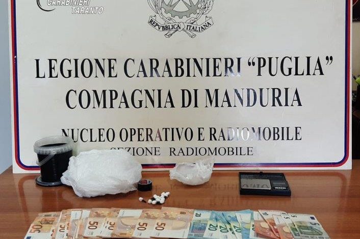La scorsa notte in Avetrana (TA) i Carabinieri del N.O.R. – Sezione Radiomobile della Compagnia di Manduria hanno tratto in arresto un 42enne del posto, con precedenti di polizia, ritenuto presumibilmente responsabile di detenzione di stupefacenti ai fini di spaccio. L’uomo notato intorno alle ore 2:00 mentre passeggiava nel centro abitato in compagnia di un 23enne, anch’egli di Avetrana, ha indotto gli operanti a procedere alla loro perquisizione personale. Il 42enne è stato trovato in possesso di 15 dosi confezionate di cocaina del peso di circa 8 grammi, nascoste negli slip, nonché della somma di euro 1270 in banconote di piccolo taglio, ritenuta evidente guadagno dell’attività di spaccio. Il giovane che era con lui, incensurato, è stato invece trovato in possesso di una dose di cocaina che, come da lui stesso dichiarato, era stata appena acquistata. La successiva perquisizione eseguita presso l’abitazione del 42enne ha permesso di rinvenire un ulteriore quantitativo di cocaina, circa 15 grammi, oltre ad un bilancino elettronico di precisione. La sostanza stupefacente complessivamente rinvenuta ed il denaro sono stati posti in sequestro per i successivi adempimenti. L’arrestato, su disposizione del magistrato di turno presso la Procura della Repubblica di Taranto, è stato tradotto presso la propria abitazione, agli arresti domiciliari. Il giovane che era con lui, sarà invece segnalato alla Prefettura di Taranto quale assuntore di sostanze stupefacenti.