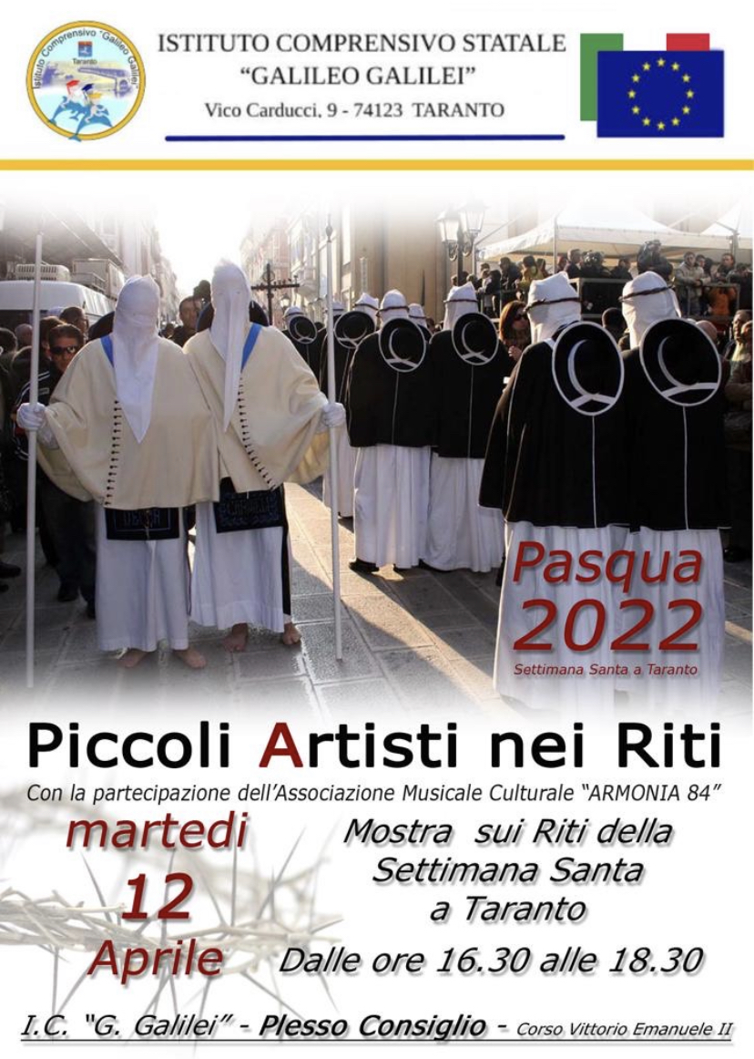 Martedì 12 aprile dalle 16.30 alle 18.30 sarà possibile visionare una mostra sulle tradizioni della Pasqua a Taranto, realizzata dagli alunni dell’I. C. “Galileo Galilei” di presso la Scuola “Consiglio”.