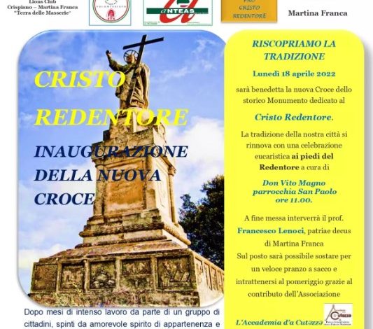 Martina Franca: il monumento a Cristo Redentore sarà inaugurato lunedì 25 aprile