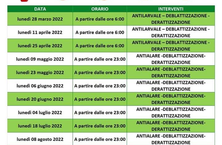 Gli interventi di disinfestazione antialare inizieranno lunedì 9 maggio a partire dalle ore 23. In quest’ultima circostanza, la cittadinanza è invitata a chiudere porte e finestre, a non circolare o sostare nelle aree degli interventi, a tenere all’interno gli animali domestici, a non stendere biancheria e a coprire i giochi dei bambini eventualmente presenti in spazi aperti.