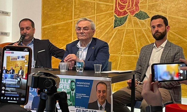 L’intervento del candidato Simone Giungato ha evidenziato l’importanza dell’Ospedale San Pio e l’eccellenza dei suoi medici e reparti; ha proseguito dicendo: «Noi faremo subito quello che serve per migliorie la vita dei cittadini; buche, marciapiedi (è causa di troppi incidenti), con attenzione alle esigenze del territorio».