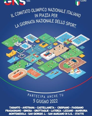 Sotto la direzione del CONI ed in stretto ed imprescindibile coinvolgimento degli Organismi sportivi e delle Associazioni sportive dilettantistiche affiliate, molti Comuni hanno attivato iniziative, eventi e manifestazioni volte a valorizzare la funzione dello sport quale fondamentale fattore di crescita e di arricchimento dell’individuo, di miglioramento delle qualità della vita e di responsabilizzazione e rafforzamento della società civile. Nella provincia ionica, oltre il Comune di Taranto, i sindaci di Avetrana, Castellaneta, Crispiano, Faggiano, Fragagnano, Ginosa, Grottaglie, Manduria, Montemesola, San Marzano di San Giuseppe e Statte hanno creduto nell’importanza di concorrere a diffondere ed affermare lo sport tra i propri cittadini, mettendo a disposizione gratuitamente piazze e vie pubbliche dove allestire ed attrezzare i vari campi di gioco. Tutti (giovani e meno giovani, anche non tesserati ad Organismi sportivi) avranno la possibilità cimentarsi gratuitamente nelle varie discipline apprezzando così il piacere e il divertimento di fare sport.