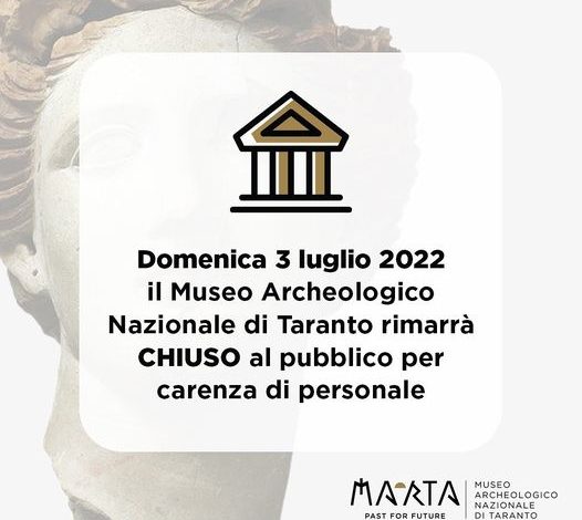 Taranto: domenica chiuso il museo archeologico per carenza di personale