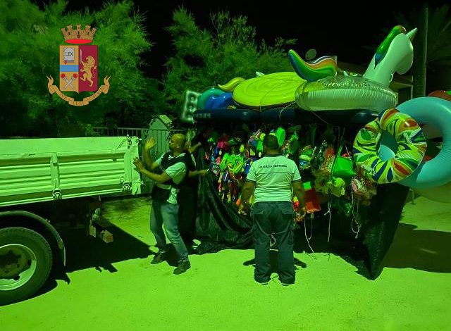 Nella nottata odierna, in Porto Cesareo, in seguito a un servizio interforze predisposto dalla Questura, sono stati eseguiti controlli straordinari con personale della Polizia di Stato, dell’Arma dei Carabinieri, della Guardia di Finanza, della Guardia Costiera e Polizia locale di Porto Cesareo, per contrastare l’abusivismo commerciale nelle località marine di quel comune.