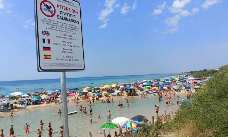 Per chi decide in questi giorni di calura di recarsi al mare a San Pietro in Bevagna (marina di Manduria) si aspetti (senza mezzi termini) di trovarsi di fronte a delle  sorprese, anzi a delle vere e proprie incongruenze … Infatti, una delle spiagge più gettonate della costa messapica, quella della foce del fiume Chidro è stata interdetta.  Attenzione! proprio su quel tratto di mare c’è il divieto di balneazione, indicato da apposita segnaletica fatta installare dal Comune di Manduria. Il paradosso però sta nel fatto che, proprio a cospetto di tale segnaletica si nota un brulichio di ombrelloni e un gran numero di bagnanti. Infatti, il “divieto di balneazione” istituito per misure di sicurezza e igienico sanitarie, non lo rispetta nessuno, dal momento che nessuno lo fa rispettare. Infatti, la competenza di eventuali controlli rientra nelle mansioni della Capitaneria di Porto, trattandosi di area demaniale, mentre sul lato opposto (area comunale)  riguardante la fatiscente costruzione in cemento  dell’Arneo, deve intervenire la Polizia Locale. Invece, da quanto si verifica, (ci venga permesso di dubitare) che si tratti unicamente di una formalità da parte comunale per tutelarsi in caso di incidente o problema causato da tuffi nelle vasche Arneo, oppure da carenze igienico sanitarie per  il troppo assembramento sulla spiaggia e ai bordi del fiume. Per concludere, considerata la situazione, si accettano anche altre ipotesi riferite al divieto in questione, premesso che non siamo nel periodo di carnevale.