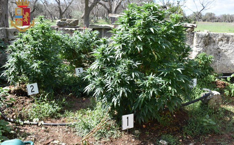 Gli agenti del Commissariato di P.S. di Galatina, a seguito di attività di indagine e con la collaborazione della Polizia Locale del Comune di Cutrofiano, hanno individuato in un appezzamento di terreno in agro del comune di Cutrofiano, una coltivazione di “marijuana”.