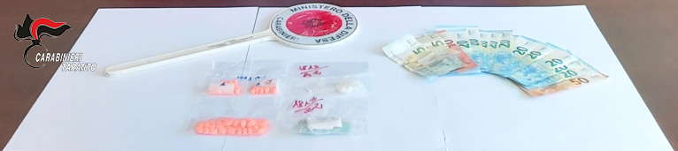 I militari, durante il controllo di un’autovettura “sportiva”, sulla quale viaggiavano 4 giovani, tutti della provincia di Bari, hanno notato il 22enne mentre cercava di disfarsi di un borsello cedendolo alla ragazza che gli era seduta accanto sul sedile posteriore. Il repentino gesto insospettiva gli operanti che decidevano di procedere ad una perquisizione veicolare e personale, all’esito della quale, rinvenivano, occultati nella tasca dei pantaloni del giovane, nr. 43 pasticche di colore arancione di “MDMA”, sostanza stupefacente più comunemente conosciuta come “ecstasy”, nr. 46 confezioni in cellophane di colore giallo e verde contenenti “MDMA” in polvere, una dose di cocaina e la somma in contante di € 1.415,00, suddivisa in banconote di vario taglio e sottoposta a sequestro in quanto ritenuta provento dell’attività di spaccio.
