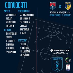Sono 11 gli indisponibili per la partita di domenica 30 ottobre, allo Iacovone, contro il Giugliano. Seguono lo squalificato Manetta, gli infortunati Raicevic e Panattoni, il primo pare sia destinato a fermarsi per molte settimane. Altri illustri infortunati sono De Maria, Provenzano, Tommasini e Brandi. Altri 4, di cui non sappiamo i nomi, più lievi, saranno della partita, almeno in panchina. Ma Capuano cercherà di vincere in casa, come sempre, da quando è arrivato. Da segnalare la non ottima situazione sia del campo A che del campo B intitolato a Francesco Di Molfetta.