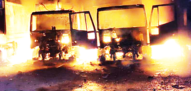 La ditta in questione raccoglie i rifiuti nel sud Salento, nel rogo sono andati distrutti, quattro autocompattatori ed un quinto ha subito danni, sul posto i carabinieri ed i Vigili del Fuoco.