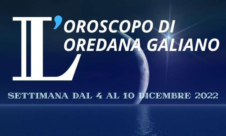L’oroscopo della settimana dal 4 al 10 dicembre 2022 dell’astrologa Loredana Galiano in esclusiva per Puglia Press Press e Puglia Press TV