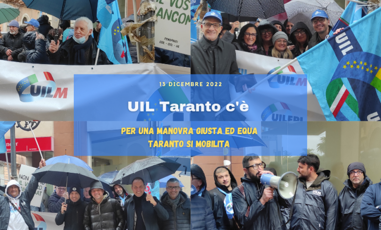Così La UIL di Taranto, come nelle restanti provincie d’Italia, nella giornata del 13 dicembre 2022 ha voluto esprimere la propria contrarietà a una legge di Bilancio ritenuta inidonea a contrastare il declino lavorativo acuitosi dopo la recente pandemia.