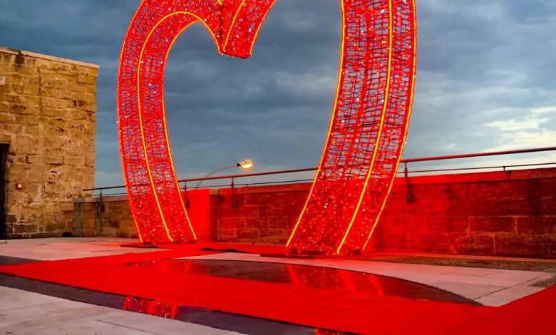 In via Argiro dal 6 al 14 febbraio sarà installata una luminaria d’artista a forma di cuore riportante la parola “LOVE”.