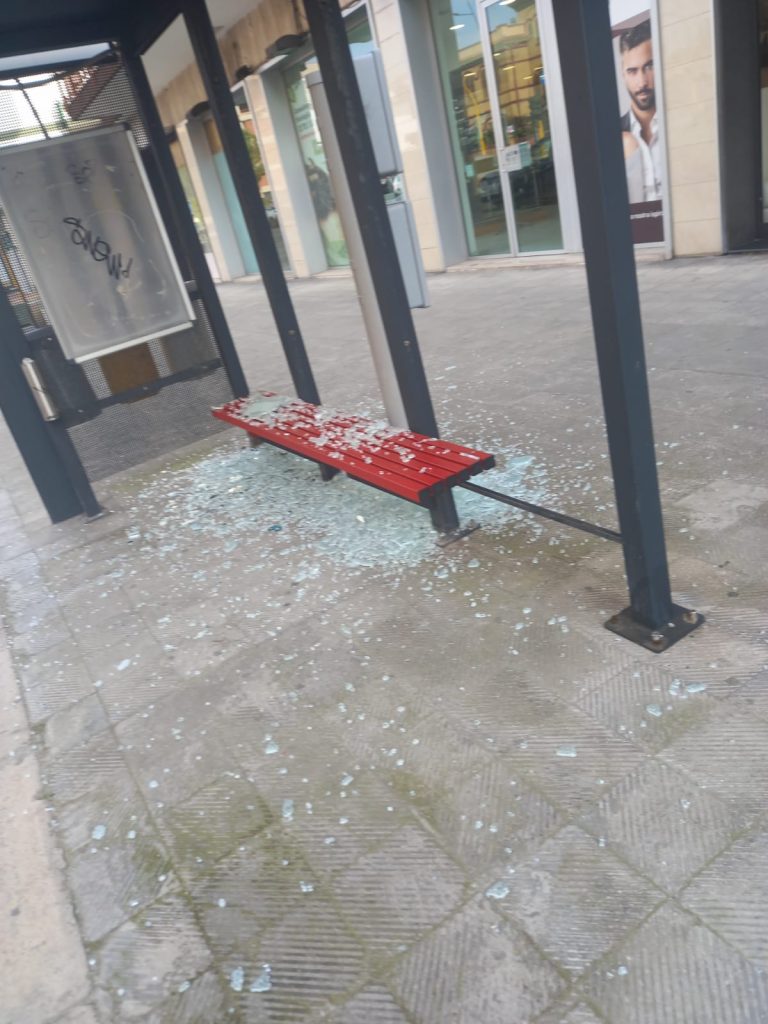 Il risultato è nelle foto che ci sono arrivate in redazione: il vetro di un’automobile andato in frantumi e le pensiline dei pullman che hanno subìto la stessa sorte.