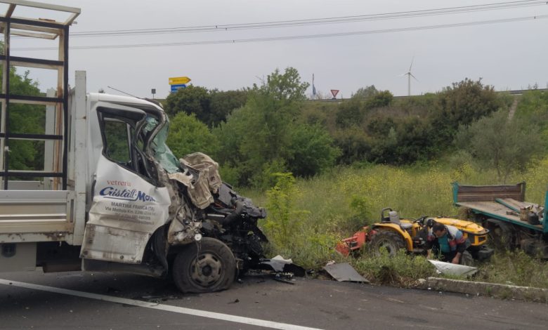 Non prendono i freni – Incidente frontale tra automezzi. Incidente stradale lungo la strada di Cripiano svincolo Taranto, due mezzi sono entrati in collisione frontale.