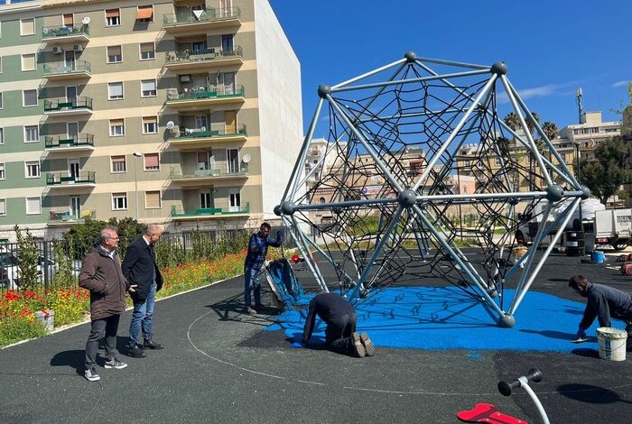 “Sono infatti in via di completamento la pavimentazione antitrauma e il montaggio di tutte le attrezzature ludiche. Particolarmente originale, spiega il Comune di Bari in una nota, è la struttura tetraedrica parkour al centro dell’area giochi, che si annuncia come la principale attrazione di questo nuovo spazio”.