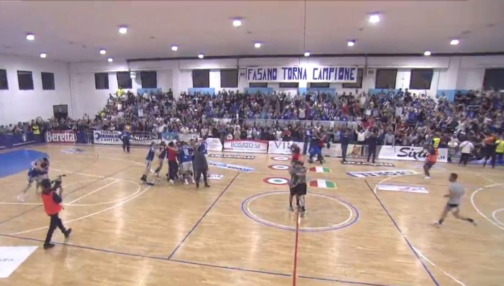 La squadra biancazzurra ha sconfitto Sassari con un punteggio di 35-32 in gara 3, conquistando così il quarto tricolore della sua storia. La squadra guidata dall’allenatore Fovio, che ha vinto lo scudetto al suo primo anno di carriera, ha ribaltato la serie contro i sardi dopo aver perso gara-1. Le ali della formazione biancazzurra sono state decisive: Pugliese ha segnato 10 reti e Cantore 9, rendendo vani tutti i tentativi di rimonta della squadra ospite. Le ali della formazione biancazzurra sono state decisive: Pugliese ha segnato 10 reti e Cantore 9, rendendo vani tutti i tentativi di rimonta della squadra ospite.