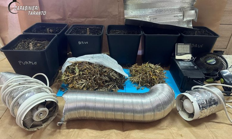 Durante una serie di servizi sul territorio finalizzati al contrasto dei reati legati agli stupefacenti, i Carabinieri del NOR della Compagnia di Castellaneta, supportati dalle Stazioni di Laterza e Marina di Ginosa, hanno denunciato un giovane residente del posto per il possesso di una notevole quantità di marijuana e attrezzature per la coltivazione e l’essiccazione della droga.
