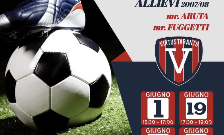 La scuola calcio Virtus Taranto è lieta di annunciare 4 stage formativi di tecnica individuale che si svolgeranno nel mese di giugno sul terreno di gioco dello Iacovone B “Francesco Di Molfetta” con i due tecnici Sossio Aruta e Carlo Fuggetti.