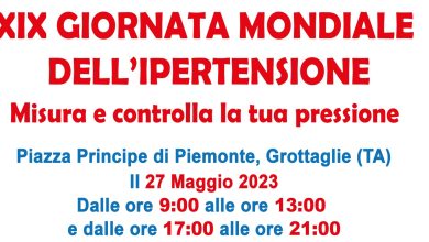 Misura la tua pressione e scopri come prevenire l’ipertensione: a Grottaglie. Sabato 27 maggio a Grottaglie si celebra la Giornata…