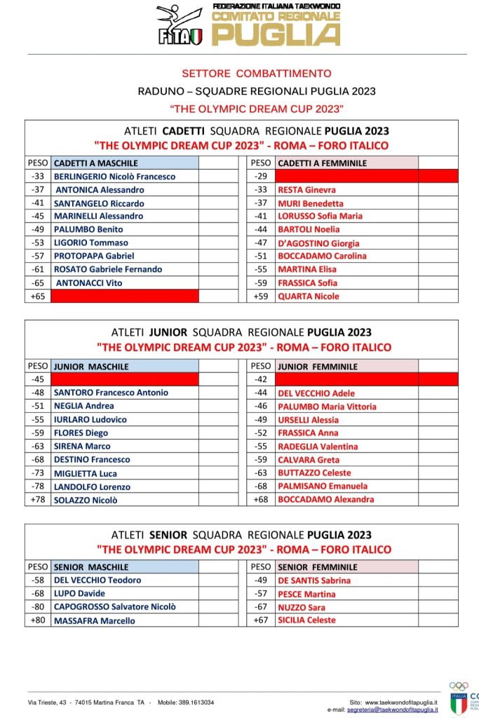 Puglia in corsa per la Olympic Dream Cup 2023. La Puglia vuole bissare il successo del 2022 nella Olympic Dream Cup di Taekwondo. La competizione si svolgerà a Roma il 12 e 13 giugno 2023.