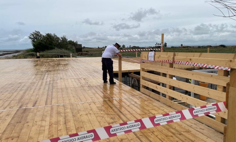 I militari operanti, con l’ausilio del personale del Comando di Polizia Locale, hanno proceduto il 15 giugno 2023 al sequestro preventivo di una pedana in legno di rilevanti dimensioni, estesa circa 400 mq, realizzata per la maggior parte su pubblico demanio marittimo e per la parte rimanente in area soggetta a vincolo paesaggistico, in assenza di qualsivoglia titolo autorizzativo.