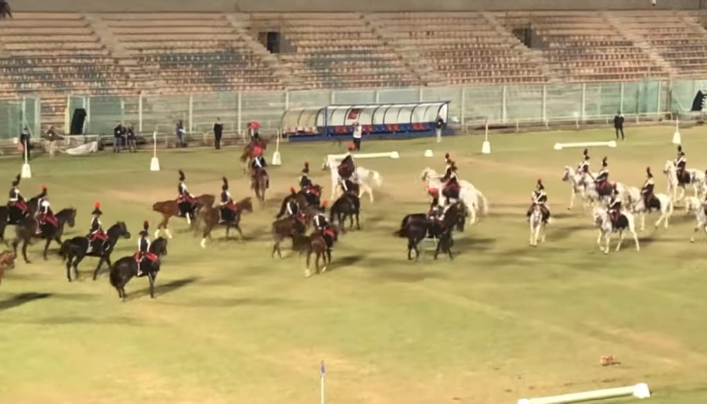 Al termine dell’esibizione, la celebre carica di Pastrengo ha fatto vibrare gli spalti, con i carabinieri che hanno lanciato il grido “Savoia!”.