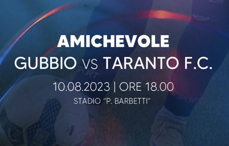 La società Taranto Football Club 1927 ha comunicato la che in data 10 agosto 2023, la formazione rossoblù disputerà un test amichevole con il Gubbio presso lo Stadio Pietro Barbetti alle ore 18:00.